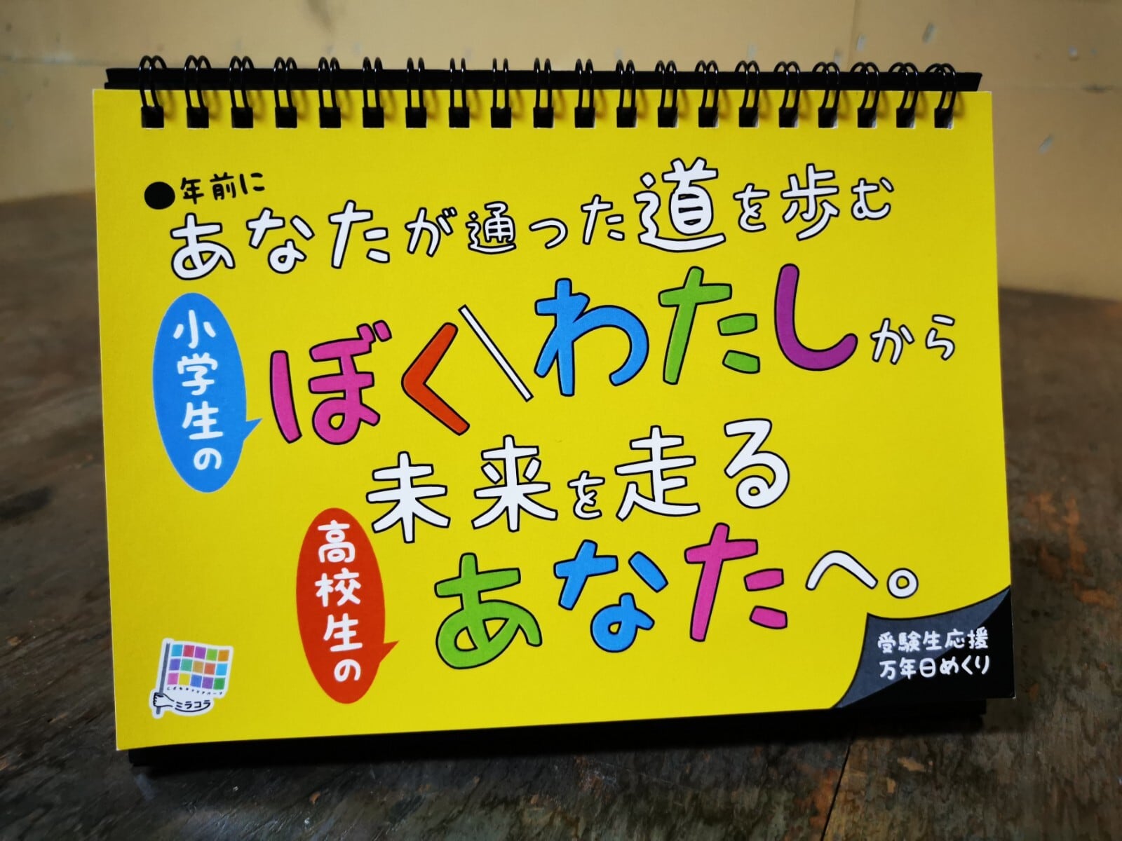 弊社キャリア塾に通う、小学生のこどもたちが受験生を応戦するために考えたメッセージを日めくりカレンダーにしました